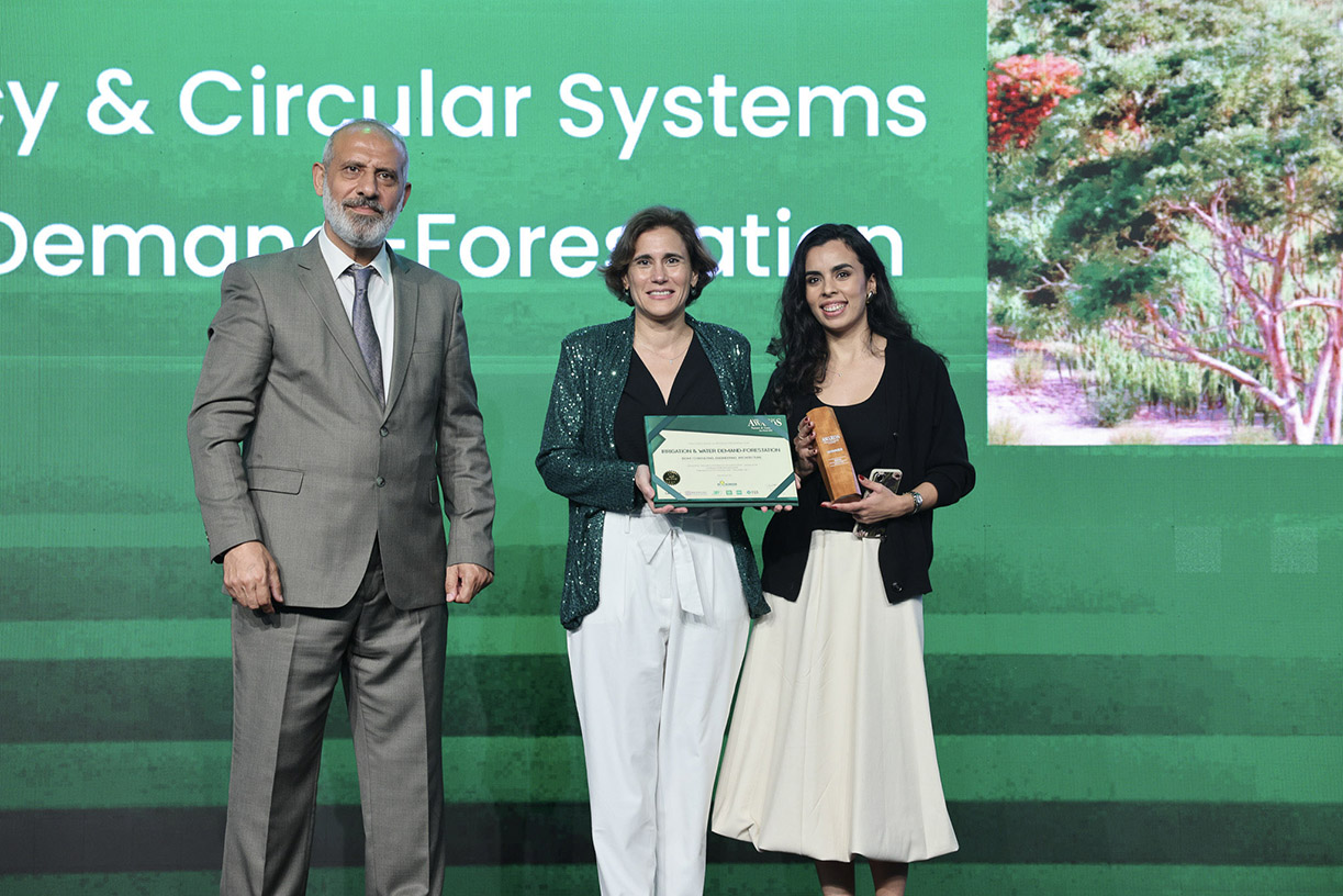 The awards ceremony took place during the Landscape Middle East Conference under the theme “Nature & Community.” It was an opportunity to share knowledge. Our colleagues Manuela Casado and Nour Slimen participated in roundtable discussions on smart landscapes and city greening, sharing our vision for habitat restoration and green cities.